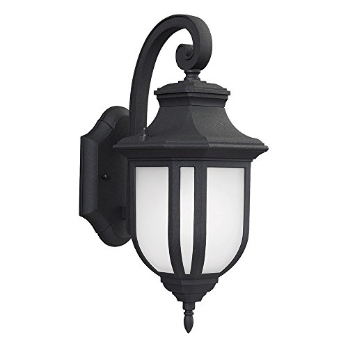 One-Day Sale: Up to 50% Off Sea Gull Lighting 8636391S-12 Childress LED Outdoor Wall Lantern with Satin Etched Glass Shade, Black Finish